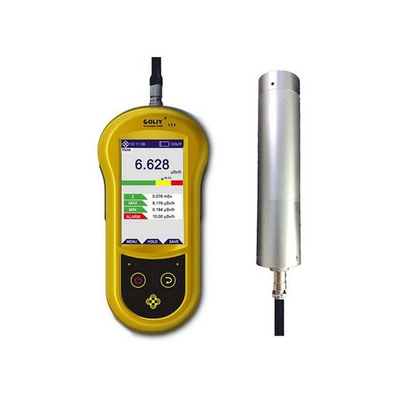 德国柯雷COLIY RL20 型低能 X、γ核辐射仪 产品简介:RL20 型低能 X、γ核辐射仪,是柯雷*新研发的 于探测低能光子的核辐射仪。探头使用 NaI 闪烁体晶体作为传感器,运用高技术超薄铍窗制造工艺,并经过特殊处理,具有噪声低 本底计数低等特点。它的可探测能量下限低至 3keV, 使用于各类涉及低能 X、γ辐射的环境监测。RL20 型低能 X、γ核辐射仪主机采用 4.3 英寸高清彩色触摸显示屏,提供多种显示模式,可同时显示实时辐射剂量率值、计数率、辐射剂量累计值 大值 小值、报警阈值等多种测量数据。仪器具有大容量数据存储及数据阅读功能,可自动和手动保存辐射剂量率值,实时值与保存值可通过上位机软件上传到电脑查看、保存并分析。该辐射仪探头外壳采用高级航空铝材打造,连接电缆*长可达 20 米(需定制)。产品有欧洲 CE 认证和 ISO9001 质量认证。